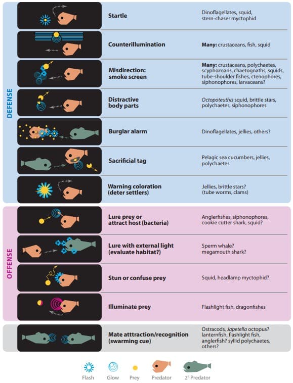 Bioluminescence provides organisms with a method of hunting, defense, or mating