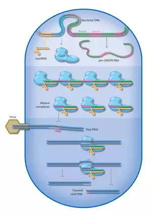 CRISPR is a molecular tool that can make precise changes to a gene's DNA. An acronym for "clustered regularly interspaced short palindromic repeats," the tool was discovered in single-celled organisms, where it acts as an immune system to attack invasive viruses. Scientists have since used it to target and manipulate precise sections of DNA—the genetic blueprints for living things.