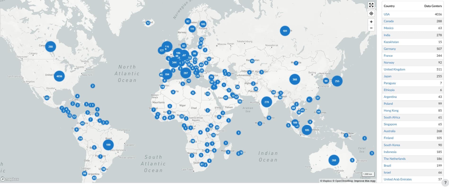 Data centers are locations that house computing infrastructure, including hardware for data storage and processing and network equipment that connects these components. Serving as the physical backbone of the digital age, data centers provide round-the-clock support for cloud-based applications (e.g., Google Docs), online financial services, streaming platforms, and generative AI systems. As of February 2026, about 37% of the world's 10,974 data centers have been built in the US, with construction largely accelerated by growing AI demands.