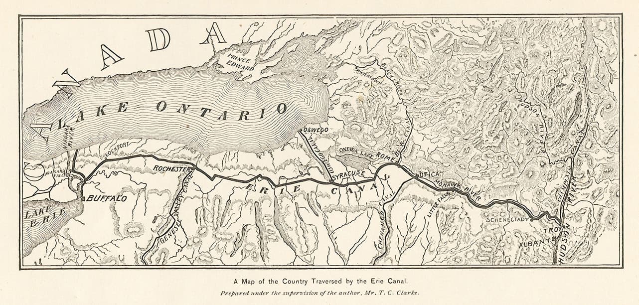 Mostly using the low elevations of the Mohawk River Valley, the canal project connected the Great Lakes to the Atlantic seaboard for the first time. This site has a series of old and new maps of the canal.