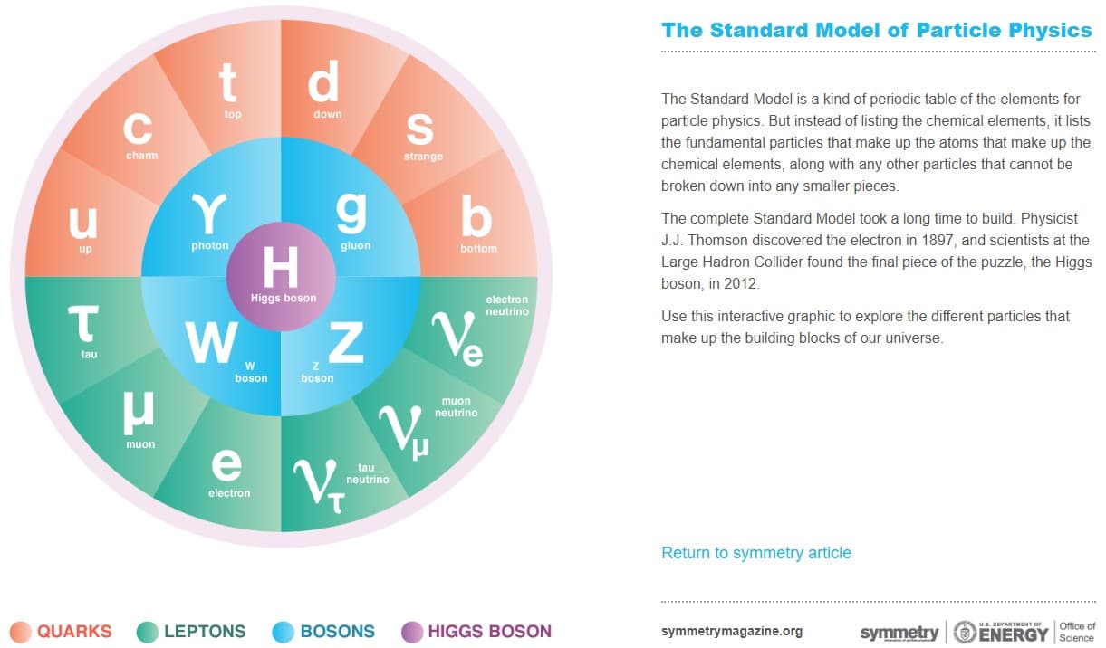 Using the framework of quantum field theory, it structures all known particles into 12 matter particles, alongside five particles that carry three of the four fundamental forces. Although remarkably precise and predictive, it cannot yet explain gravity, dark matter, or dark energy.